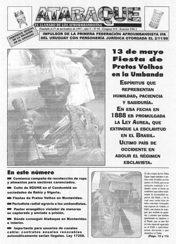 ¿Porqué? Por muchos años nuestra religión fue desconocida socialmente o lo que es peor, mal conocida. Entre miedos, tabúes y prejuicios, crecía el oscurantismo y los imitadores, que dejaban muy mal parada nuestra creencia espiritual. Desde Atabaque e IFÁ la Federación, intentamos difundir y enaltecer la Umbanda y los Cultos Africanistas. Para ello hemos buscado acercar a espectadores y oyentes calificados. Gente con discernimiento y que por sus propias tareas, están especialmente capacitados para comprender diferentes manifestaciones humanas, como en este caso la religiosa. Actores sociales cuya palabra es fidedigna y cuenta de antemano con la confianza de muchas personas, en lo concerniente a sus expresiones. Por eso tratamos de que vengan y vean lo que hacemos, distintas personalidades del quehacer nacional. Por eso es bueno que haya prensa. No sólo transcribirán con objetividad y propiedad, porque vieron con sus ojos y escucharon con sus oídos, sino que la gente sabrá que eso es así y no de otra manera, porque esas personas lo dicen. No es lo mismo que X presencie un ritual y lo cuente, a que lo haga el Jefe de Policía o el Presidente de la República.