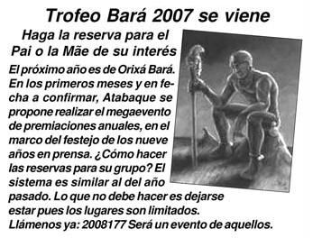 La edición Nº 108 de Atabaque, se terminó de imprimir el viernes 3/11 cuando todavía estábamos en plena puja por hacer valer nuestras razones espirituales frente a los parlamentarios. Finalmente lo que pedimos fue atendido en la sesión de Diputados del martes 7 de setiembre/06, y aquí detallamos algunos de los comunicados enviados y textos de los medios de prensa escritos que se hicieron eco de la situación. Alabados sean nuestros Pais Sagrados que nos ayudan a cumplir con la misión encomendada.