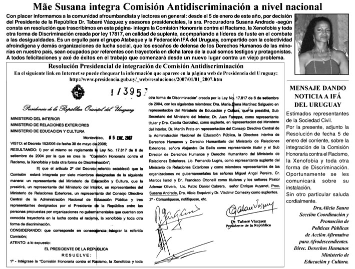 Asimismo, Atabaque y la Federación Afroamerindia del Uruguay (Ifá), solicitó a