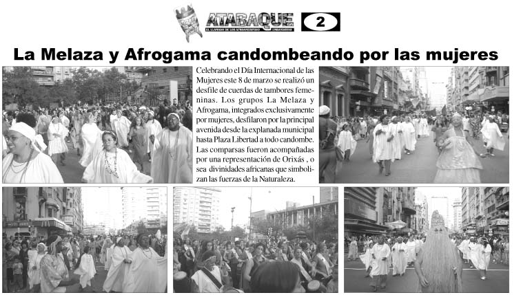 En el desfile homenaje a la mujer del 8 de marzo, quien viste “palhas da costa” o ropas de paja de Omulú, es Pai Julio Kronberg de Omulú Coordinador de la Unidad de Atención a la Diversidad Cultural de la IMM y redactor responsable de Atabaque.
