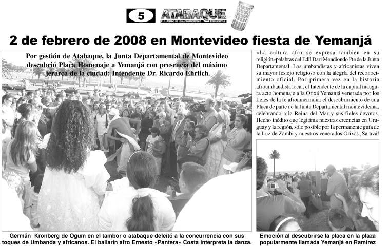 por segundo año consecutivo, a la fiesta de Iemanjá en Montevideo. Aunque la
